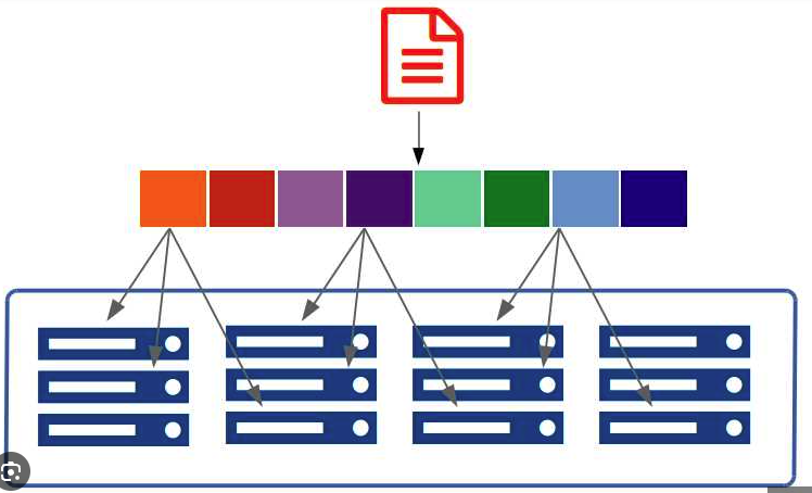 - Blocks are replicated for fault tolerance (default replication factor is 3).